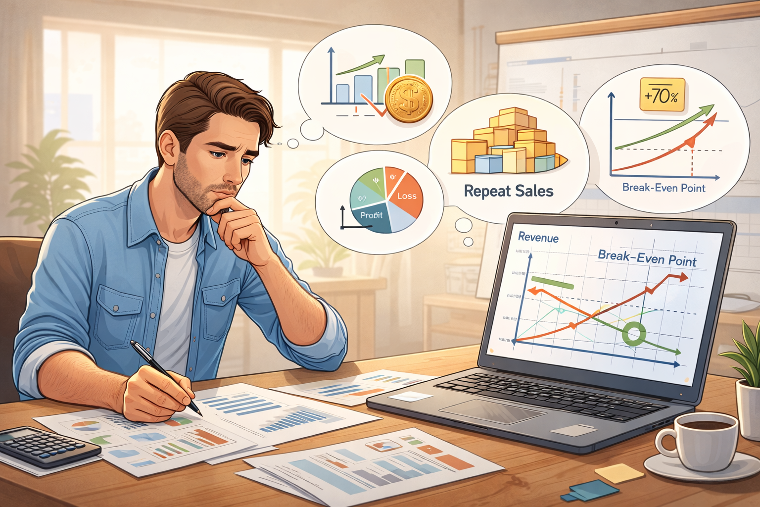 Короткий анализ точки безубыточности, фокуса и повторных продаж — за 2 минуты.